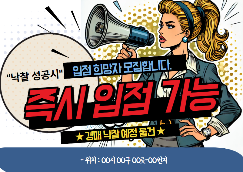 - 광고 문구에 “경매 물건으로 입찰 예정이며, 낙찰 시 입점 가능”이라고 명확히 고지