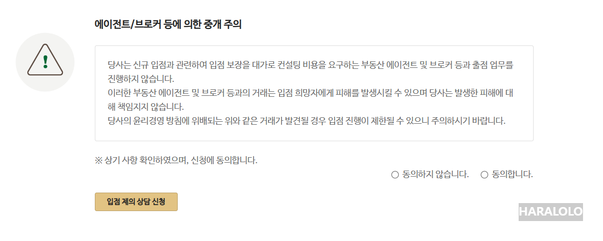 - 스타벅스는 외부 중개인을 통하지 않고 직접 계약을 진행합니다. ‘보장 입점’을 미끼로 비용을 요구하는 제3자는 주의해야 합니다.