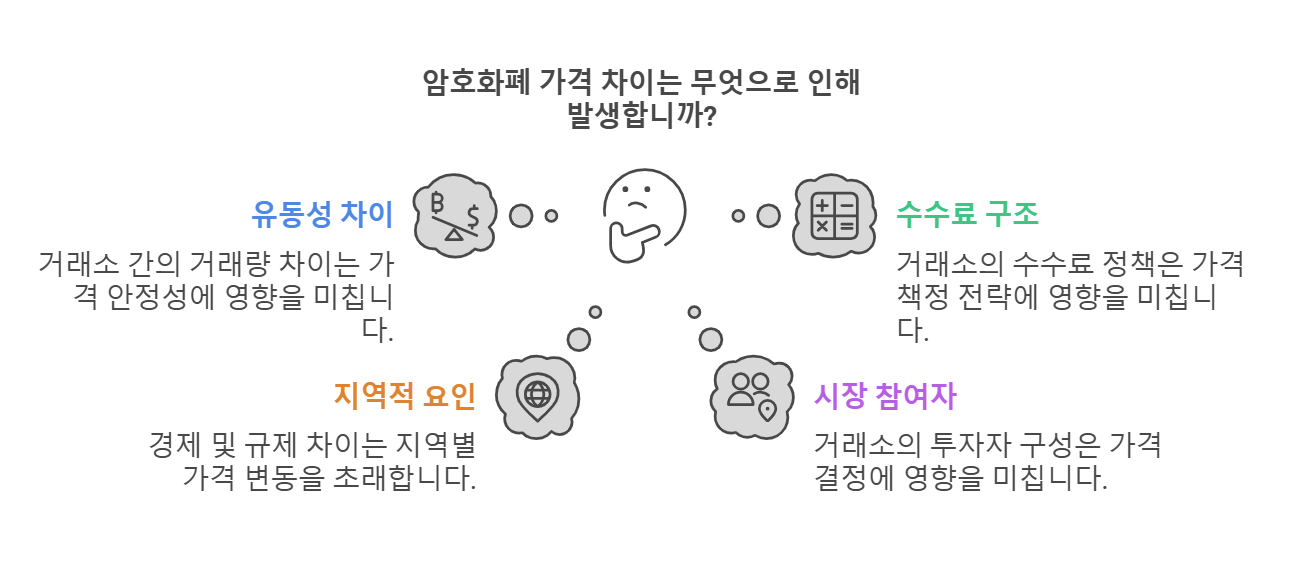 암호화폐의 가격이 거래소마다 다를 수 있는 이유는 여러 가지가 있습니다. 주된 이유는 다음과 같습니다: