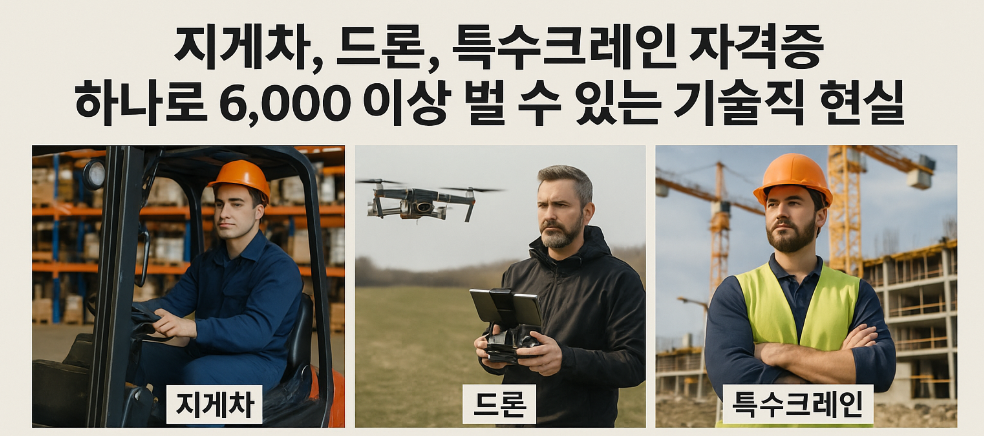 대졸이 아니어도 가능하다! 지게차, 드론, 특수크레인 등 고수익 기술직 자격증만으로 연 6,000만 원 이상 수입을 올릴 수 있는 직업을 완전 분석합니다. 실제 수요, 취득 조건, 전망까지 현실적인 정보만 담았습니다.