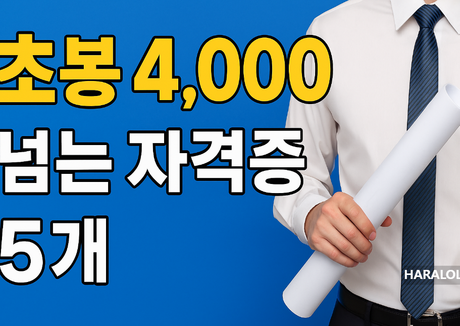 고연봉 커리어를 꿈꾸신다면 자격증이 해답입니다. 초봉 4,000 이상 가능한 자격증 5가지를 선정해 취업 가능 분야, 준비 방법, 실제 연봉까지 정리했습니다.